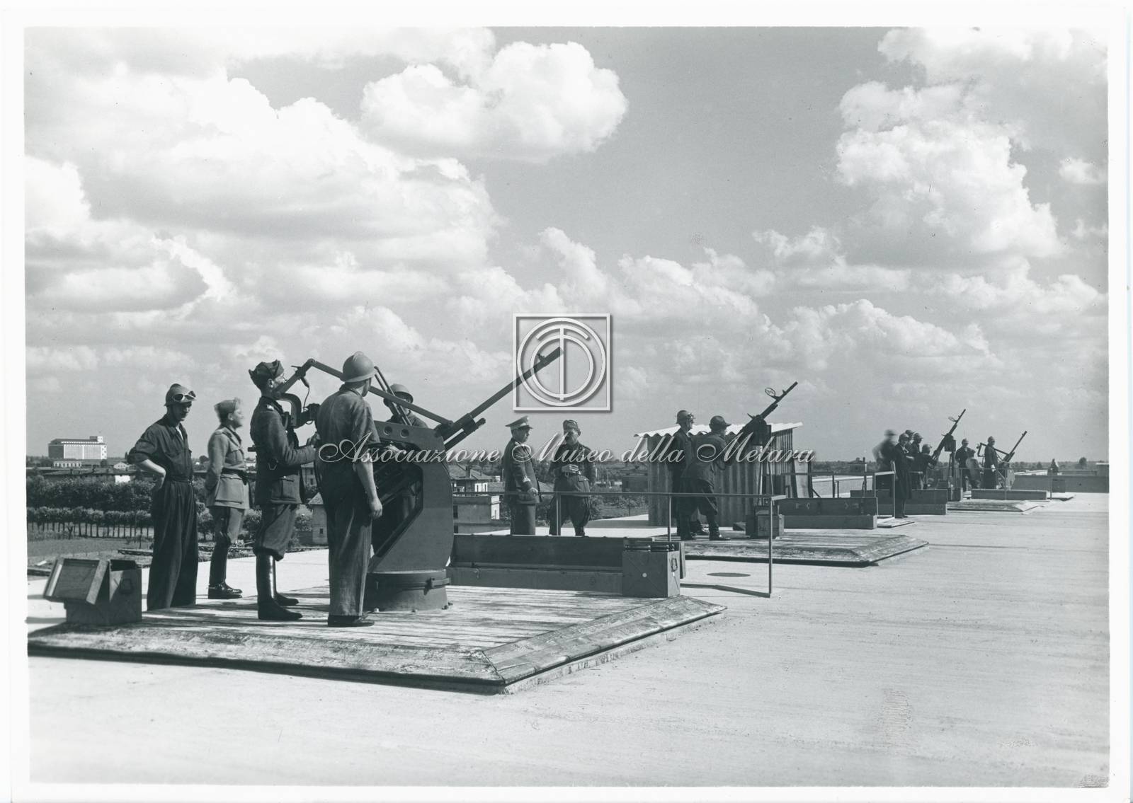 Tecnici e operai durante le prove difensive - Tetto della palazzina della direzione