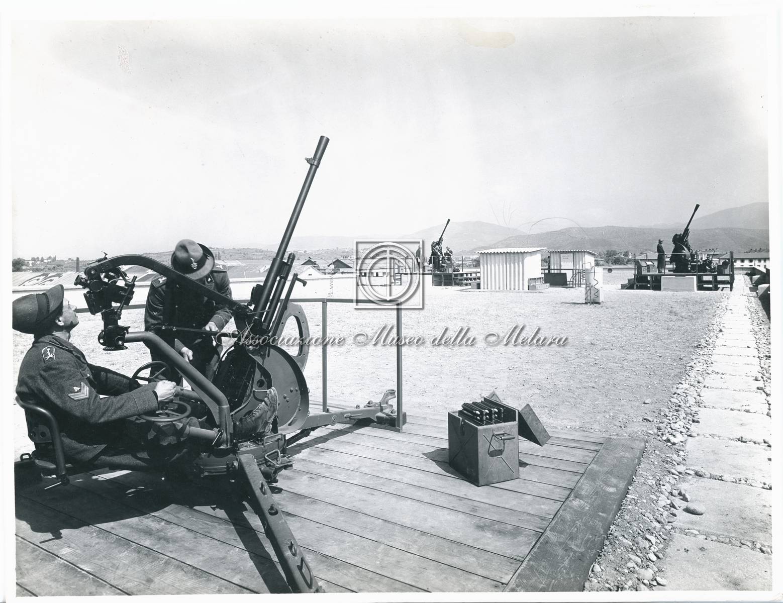 Militari e tecnici al lavoro per la difesa contraerea dello stabilimento