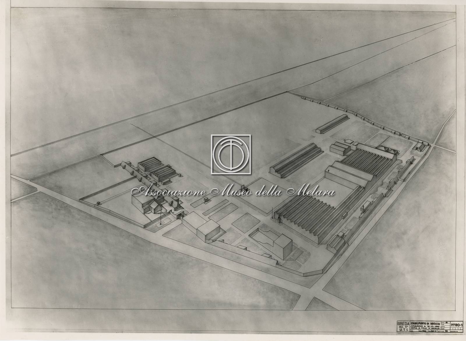 Fotografia di disegno tecnico - Vista a volo d'uccello dello stabilimento